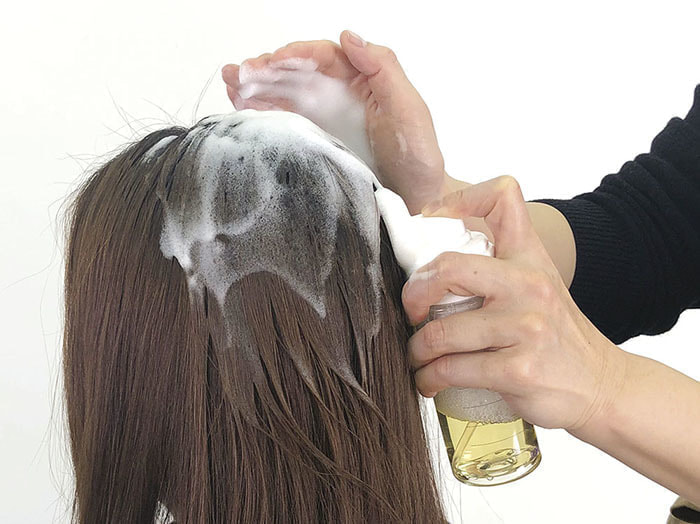 ⑤シャンプー後、ヘアパックで頭皮と髪の栄養保護。