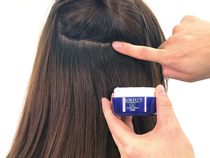 ③グロスクリームで皮脂を浮き上がらせ頭皮を滑らかにします。