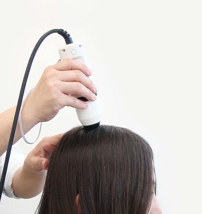 ①マイクロスコープを使用し、今の頭皮の色と状態を診断します。